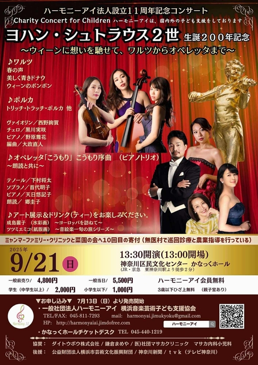 音楽の普及と国内外の子ども支援に取り組む一般社団法人ハーモニーアイのコンサートが9月21日(日)午後1時30分から、横浜市神奈川区民文化センター「かなっくホール」で開かれます。ハーモニーアイはこれまでもMFCGの活動をご支援くださっており、今回のコンサートでもMFCGをご支援いただける予定です。当日は、MFCG代表理事の名知仁子のビデオメッセージもご覧いただけます。