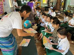 我々が、ミャウンミャの町で、それも公立学校で保健活動を行うのは2015年に移り住んでから初めてです。このお話をいただいたときに、子どもたちの健康に寄与できると、とてもうれしかったです。最終的に、合計2253名の生徒と83名の先生に保健省の専門家の方がたと合同で三大栄養素の題名で講座を持たせていただきました。私は事務所から地球儀を持参し、講座の初めに必ず、日本人の私は皆さんと国も違えば、年齢も違う、そして男女の違いもあるが、それらを超えて友人として接しているという話をさせていただきました。ミャウンミャには外国人は私ただ一名しかいません。その私と出会うことで、国籍など関係なく友人になれることを知ってほしかったのです。